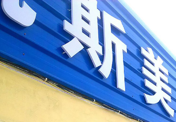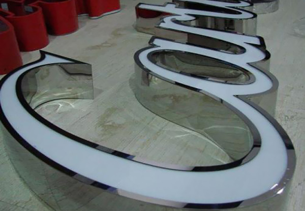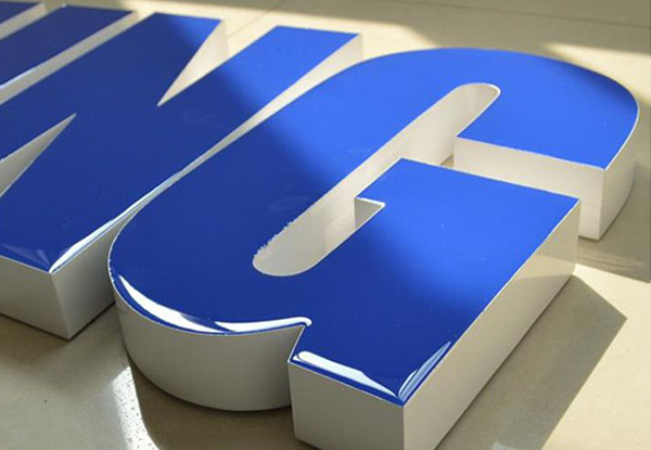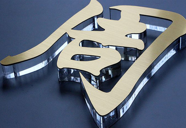 應(yīng)用于背景墻,以及小的門頭字,或大的門頭用于做小類目或地址電話之類的。主要是以水晶字為主,材料由有機玻璃板雕刻成形的;優(yōu)點是各種色板都有,像玻璃樣光澤、透亮、顯高檔,但不耐磨、易劃破、三到五年失去光澤;普遍應(yīng)用于中小型企業(yè)公司或?qū)Yu店形象墻、門店招牌、門牌用字。一般是雙層的亞克力制作,下面是透明的亞克力(一般厚度有5mm,8mm,10mm),面板是3mm厚的帶顏色亞克力。采用粘合方法連接在一起,從側(cè)方看有水晶的效果,故俗稱“水晶字”。