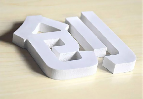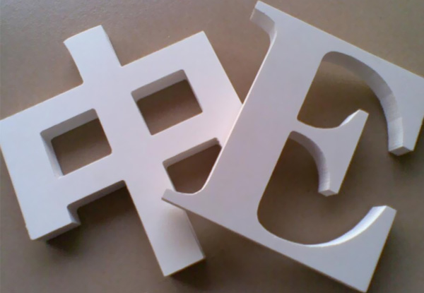 不會發(fā)光,顏色有很多,可以雕刻成各種造型的,厚度有1-3個公分的厚度,這就是“PVC字”。PVC立體字材料為白色或黑色塑料板,雕刻機雕刻成字,優(yōu)點是價格實惠、有立體感、啞光,限做白色或黑色,但也可以噴漆,但效果沒有原色好。缺點就是光澤度不強、易臟。普遍應(yīng)用于室內(nèi)外,企業(yè)公司或店鋪形象墻、招牌、標識指示牌、行政門牌等。屬于比較的經(jīng)濟實惠類型。